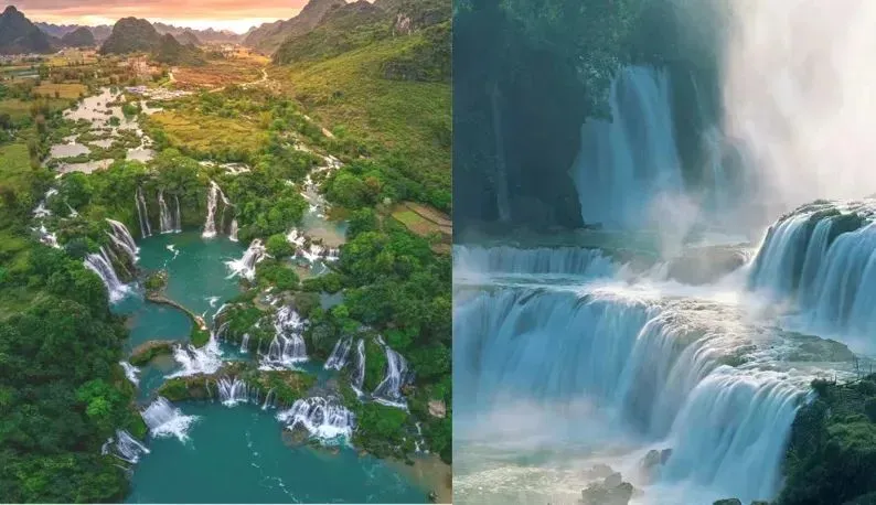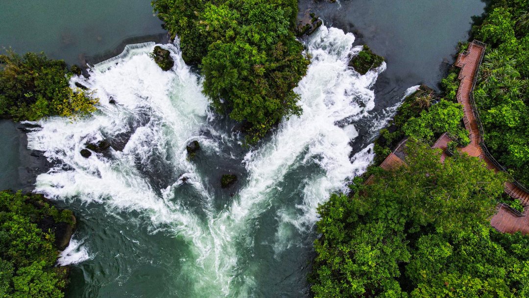 德天瀑布位于广西崇左市大新县硕龙镇德天村,中国与越南归春界河上游,瀑布发源于广西的“鹅泉”,与越南板约瀑布相连。