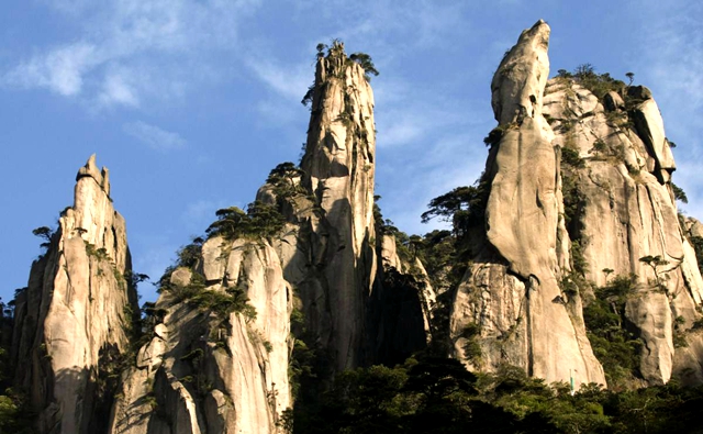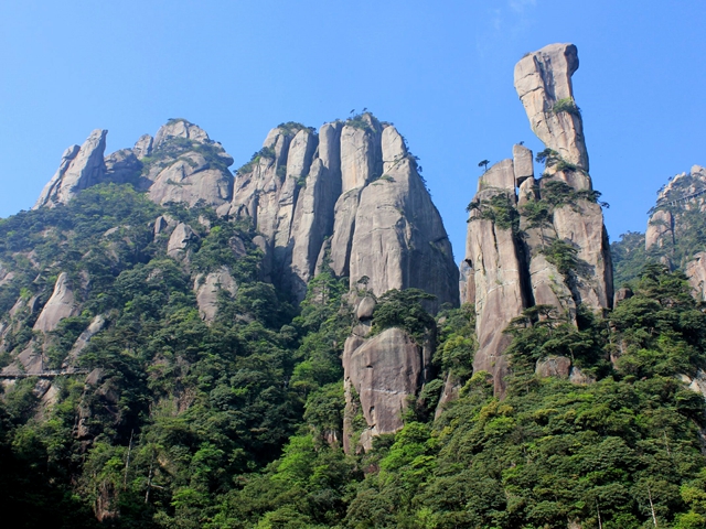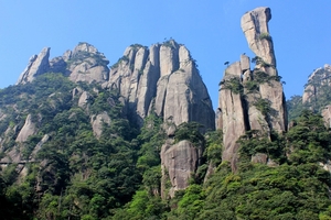 三清山又名少华山,位于江西省上饶市东北部,因玉京、玉虚、玉华三峰峻拔,宛如道教玉清、上清、太清三位尊神列坐山巅而得名。三清山有中国第一仙山的美誉,称绝的自然山岳风光,中华自然瑰宝。自古享有“清绝尘嚣天下无双福地,高凌云汉江南第一仙峰”之殊誉。举世无双的花岗岩峰林地貌,“奇峰怪石、古树名花、流泉飞瀑、云海雾涛”并称自然四绝。兼具“泰山之雄伟、黄山之奇秀、华山之险峻、衡山之烟云、青城之清幽”,被国际风景名家誉之为:“世界精品、人类瑰宝、精神玉境”。她以梯云岭、南清园、万寿园、西海岸、玉京峰、阳光海岸、三清宫、玉零观等十大景区引人入胜。山的东南麓水连三清湖,山光水色,溶洞奇石,美不胜收。现为世界自然遗产、世界地质公园、国家AAAAA级风景旅游区、国家自然遗产、国家地质公园。