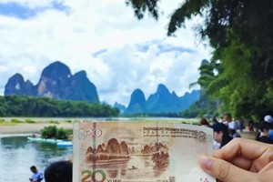 元宝山加上后面的群峰以及右边的群山组成了二十元人民币背面图,这里的蓝天白云青山绿水翠竹倒影,为桂林山水的典型代表,凝重中透露着灵动之气。