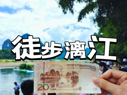 1. 徒步中国十大经典徒步线路之一--徒步漓江18KM,打卡20元人民币背景,黄布倒影,九马画山