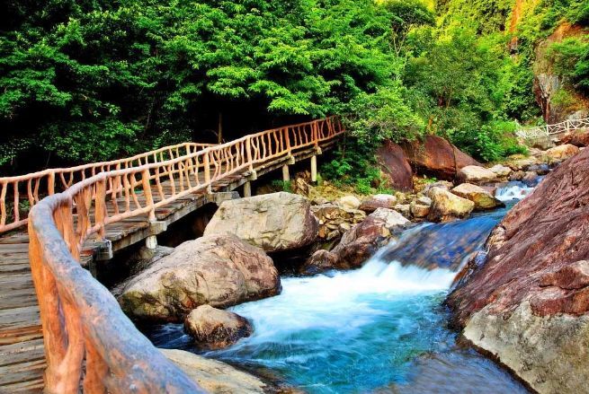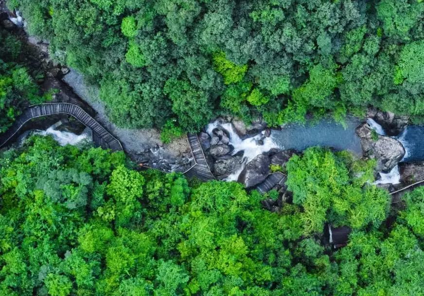 亲水栈道贴着溪流