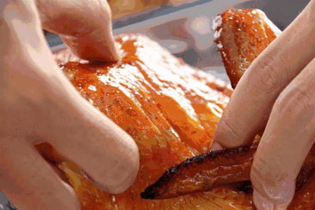 撕开鸡肉还能看见亮晶晶的汁水,鲜嫩无比!