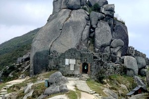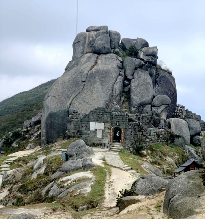 山顶依托团山石而建一寺庙,全寺由石头构成,石头砖,石头墙,石头瓦,石头屋顶,构成一个富有天然意味的全石质建筑。石屋里面据说冬暖夏凉