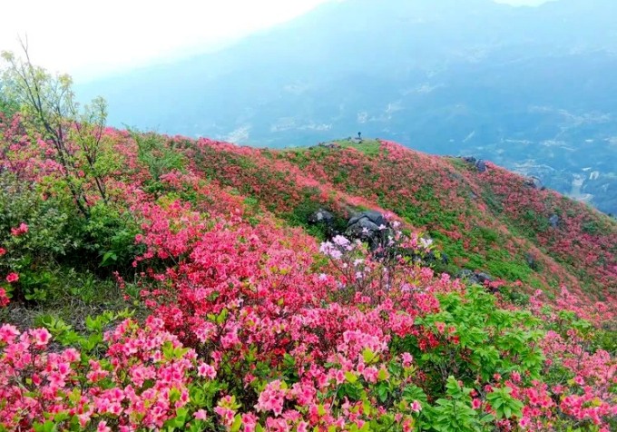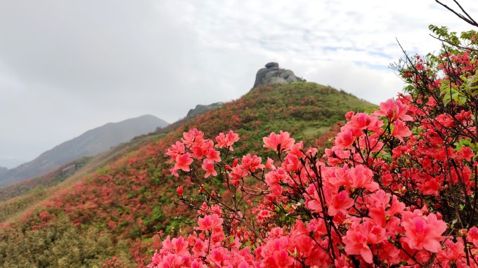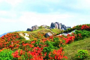 扶苍山,位于桂阳光明、华泉两乡交界处,海拔1428米。这里山峦叠翠,悬崖峭壁,怪石林立,风光绚丽,具有路崎、崖险、石怪的特点,山顶有“团山石、石鼓、仙人游山、孝子辞行”等景点,民间称为“扶苍四绝”,为湘南奇观。(以上文字摘自网络) 每年“五一”节假期前后,杜鹃花开满山坡,点缀在怪石丛中,引来游客无数。