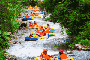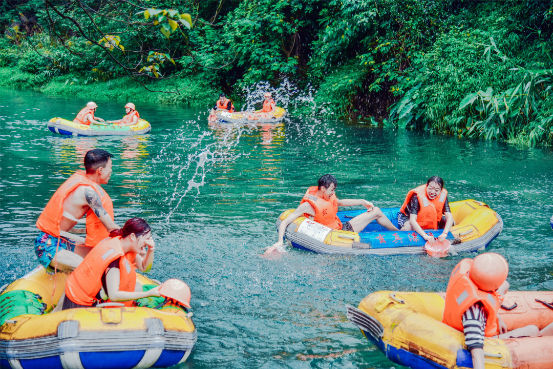 畅玩线:适合家庭亲子游及团队游,提供1小时清凉快乐体验,沿途打卡网红跳台、峡谷水滑道、水上魔毯、峡谷蹦床、水帘洞、网红竹叶舟、香蕉船、西瓜船等项目。