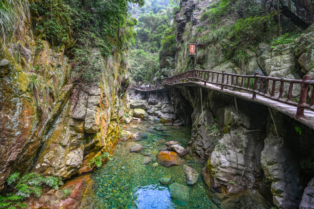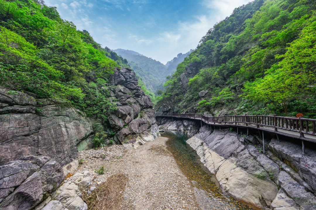 走进全长3.8公里的森林峡谷,两侧山高崖陡,叠嶂起伏,满目青葱,风光旖旎,置身山间呼吸着8万/cm³高负氧离子的清新空气,绝对是名副其实的纯天然森林大氧吧
