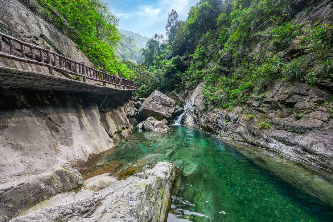 沿着山道而行还有让人瞩目的正是一汪汪清澈如镜的溪潭,水质晶莹碧透,如同碧玉翡翠,又如同镜中画卷,美到窒息!