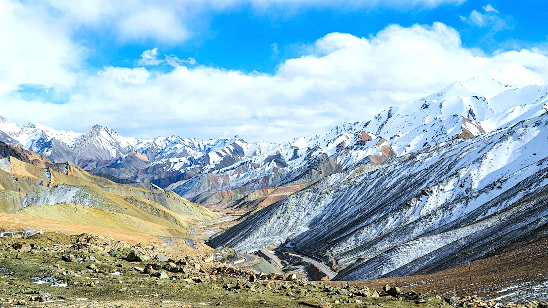 今日出发前往叶城,叶城位于新藏线的0公里处,即国道219新藏线的起点,连接着两省三地(两省:新疆、西藏;三地:喀什地区、和田地区、阿里地区),是古丝绸之路的南道重镇。对往来于新藏线的人来说,叶城既是起点又是归宿。接着沿G219新藏线出发,翻越的第一个达坂是库地达坂(又名阿卡孜达坂),从这里开始就要进入真正的高原。库地达坂因地势险要而得名,一路风景如画,远处的盘山公路一路蜿蜒至云里。随后翻越麻扎达坂(也叫赛力克达坂),是第二个高山口,也是新藏线最长的达坂。这里可以欣赏到世界第二高峰——乔戈里峰的风采。最后翻越黑卡子达坂(也称柯克阿特达坂),俗话说:“黑卡达坂旋,九十九道弯”,远处雪山相伴,美景不言而喻。晚入住和康。