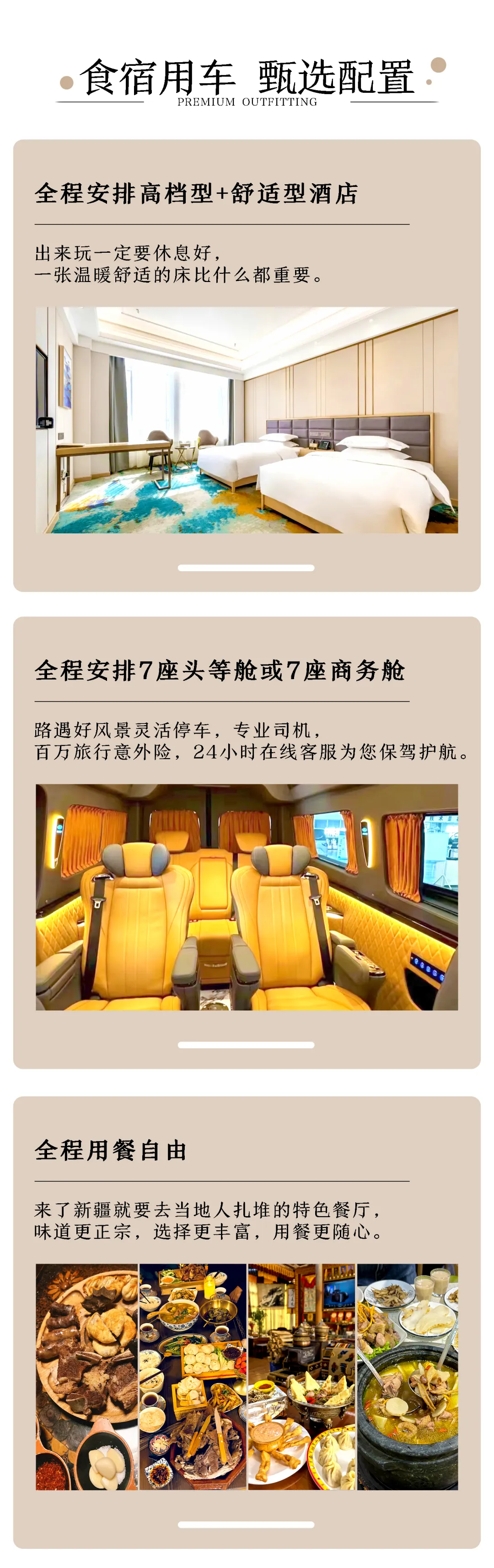 3、住宿:全程共7晚住宿(高档型为携程四钻或当地四星,舒适型为携程三钻或两钻或当地三星)