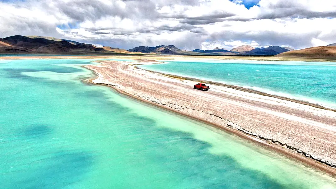 今日早起沿着国道317出发前往改则,一路上道路很平坦,突然盐湖出现在眼前,你也许听说过茶马古道,但是否知道在西藏还有一条“盐羊古道”,很早以前这里正是依靠着绵羊,将这些“雪白黄金”运送到其他地方。目前盐湖已经是西藏的非物质文化遗产,是一个很出片的地方哦!离开盐湖好似进入一个野生动物保护区,藏羚羊、藏野驴、牦牛悠闲而惬意。更让人兴奋的不止这些,随着车子前进,沿途大大小小各种“措”映入眼帘,有些也是叫不出名字的措,是“措”又“措”,一“措”再“措”的奇妙魅力。不能措过的要属达绕措、物玛措、以及旁边一个不知名的“措”,三个湖可以同框,颜色各异,美轮美奂。晚入住改则。