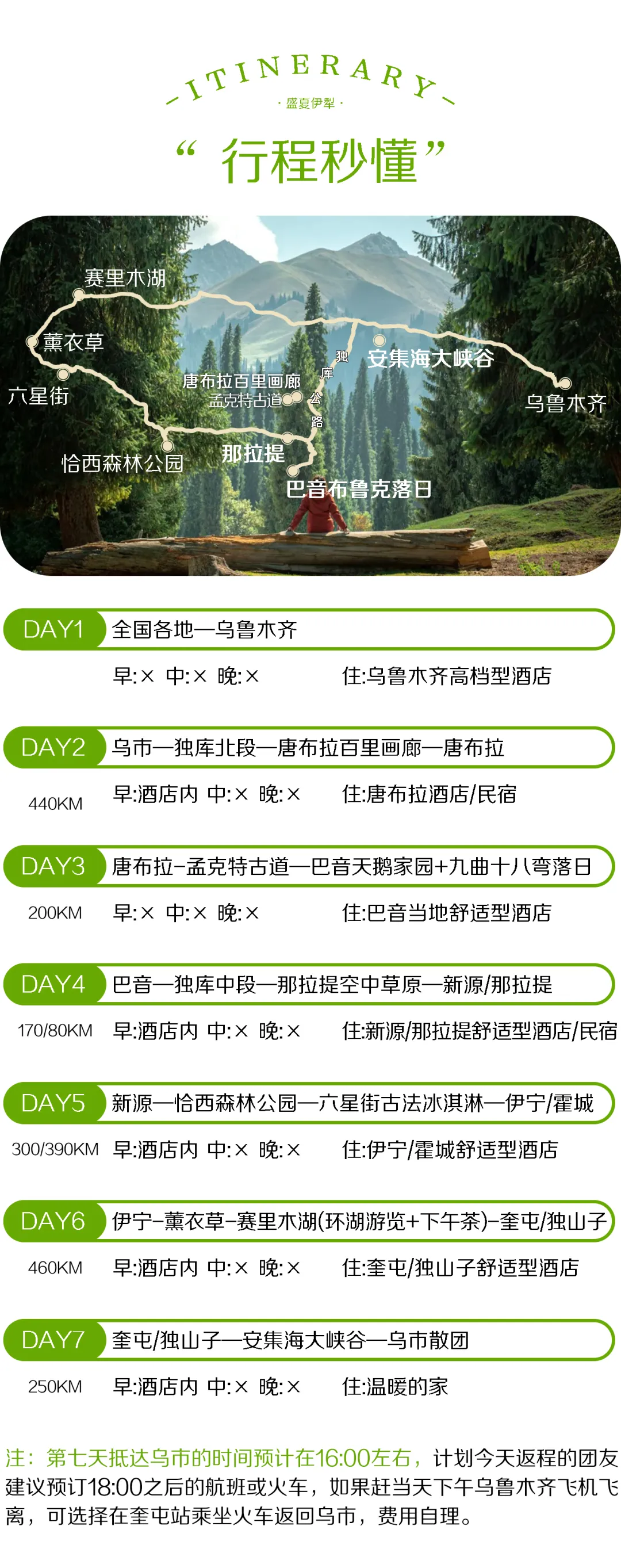 2. 如因天气等原因,那拉提空中草原区间车暂停营运,则变更为游览河谷草原,费用不变。