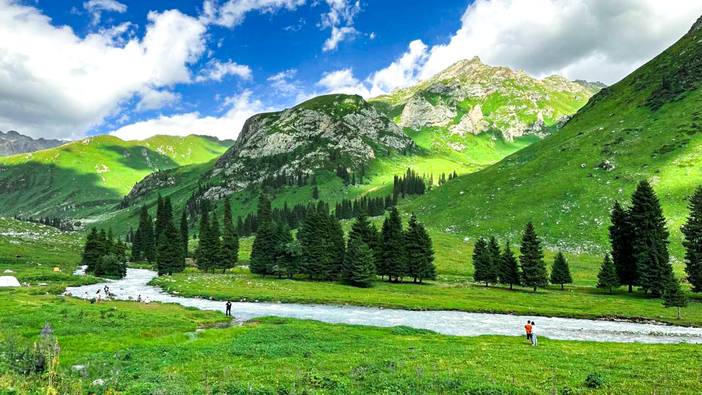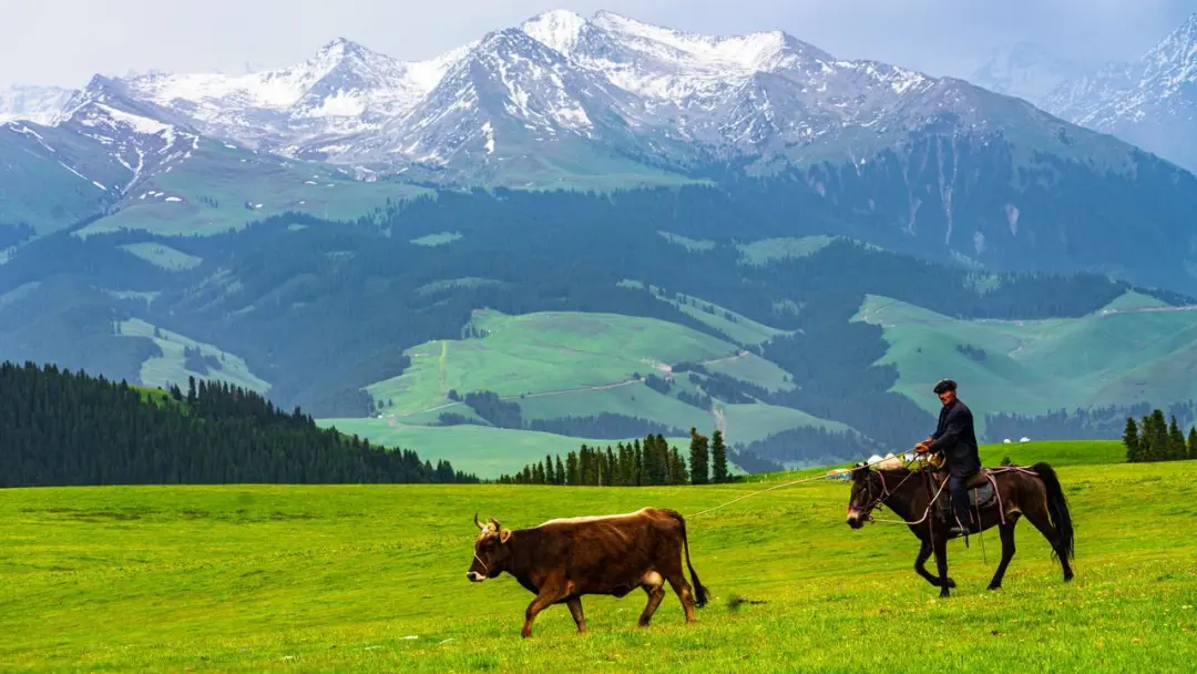 今日早起前往喀拉峻草原,喀拉峻草原是天山褶皱里铺展的立体画卷。它以“山脊上的莽原”之姿,让绿草随山峦起伏成柔美的浪涛,春夏季的五花草甸缀满斑斓繁花,似大地打翻的调色盘,与远处雪岭云杉相映成趣。牛羊散落在绿意深处,牧歌随微风漫过峡谷,雪山为背景,森林作点缀,每一处光影、每一缕草香,都诠释着山地草原的极致美学。你可选择策马踏过漫山繁花与缓坡(选择正规马队,费用自理),风携草木清香掠过耳畔,骏马载你穿梭光影草甸,把雪山云杉与牧群的画卷逐帧珍藏;亦可轻徒步,循牧道缓行,俯身轻触带露青草,抬眼尽览连绵山峦与澄澈天际,于步履间读懂山地草原的灵动深邃。适时前往今日住宿地。