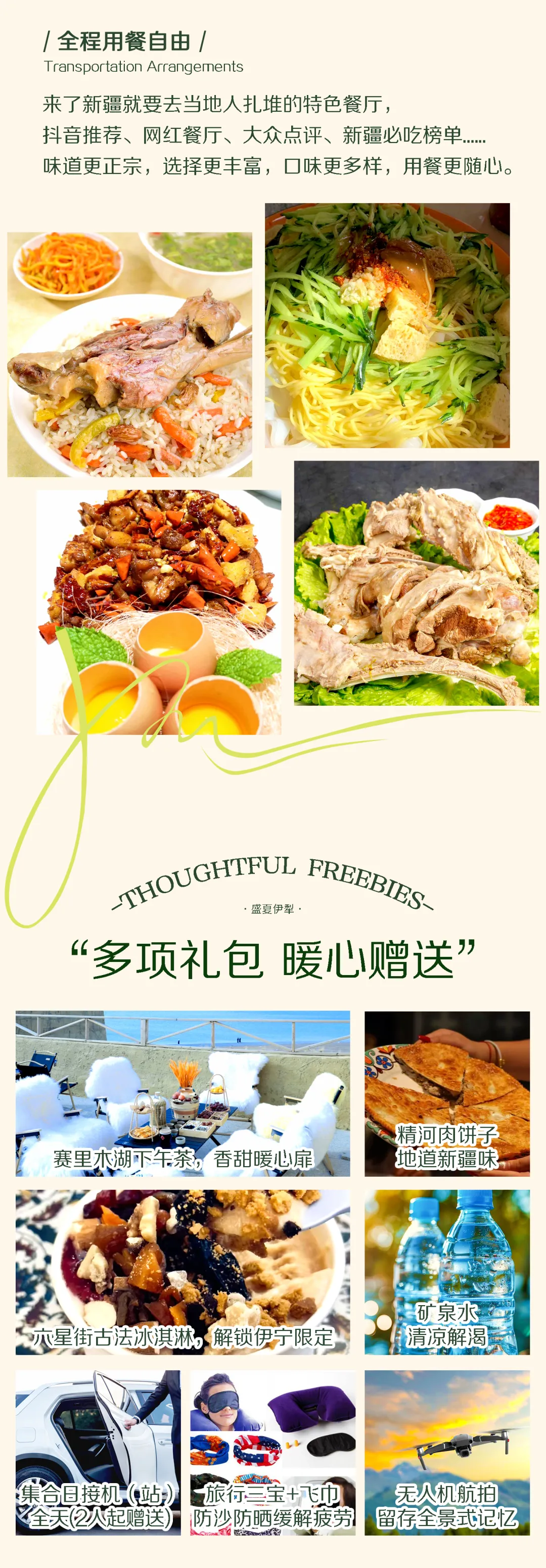5.全程用餐不含,就是为了让大家有更多的机会去品尝当地美食,市区晚上建议大家三五结伴而行用餐,中午根据情况由领队推荐集体团餐或者路餐,常规午餐人均消费约30-40元左右,晚餐人均消费约40-50元左右,部分景区/住宿地因食材运输等原因,餐食消费较常规人均消费高10-20元左右(景区内建议大家集体吃团餐,经济划算)。