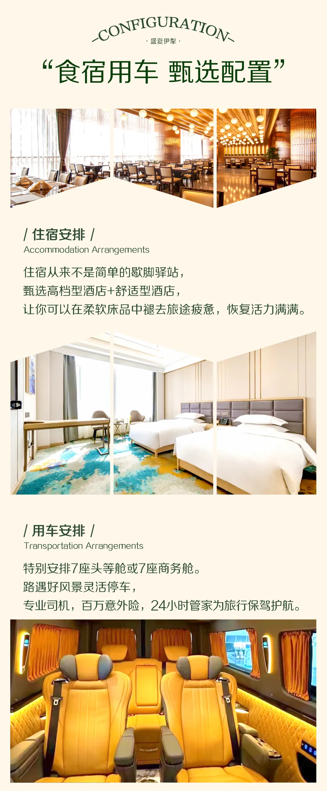 3、住宿:全程共7晚住宿(高档型为携程四钻或当地四星,舒适型为携程三钻或两钻或当地三星)