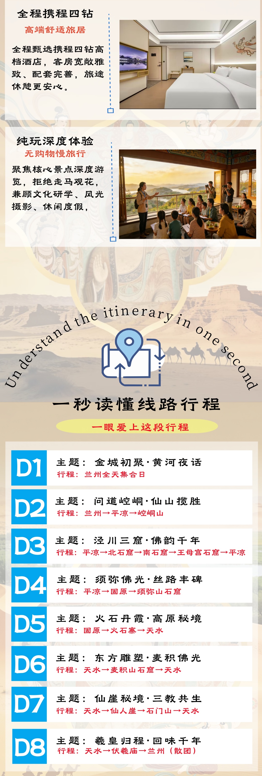 - 16:30左右抵达兰州,散团结束行程,建议预订18:00后返程交通。