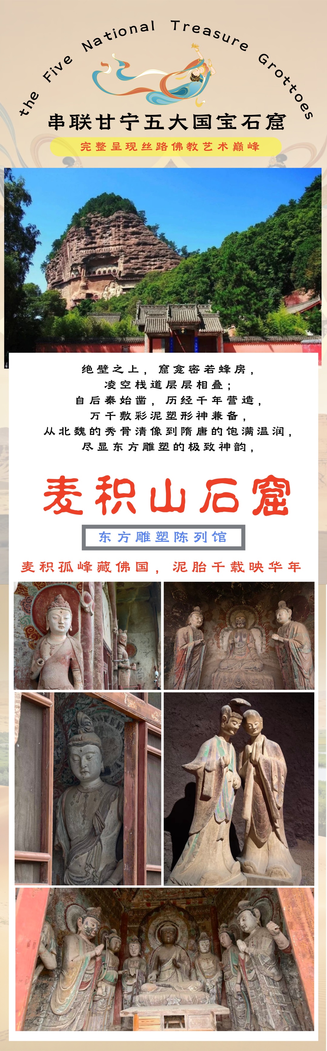 早餐后上午深度游览麦积山石窟,中国四大石窟之一,被誉为“东方雕塑陈列馆”,行走绝壁栈道,观赏千年石窟艺术。