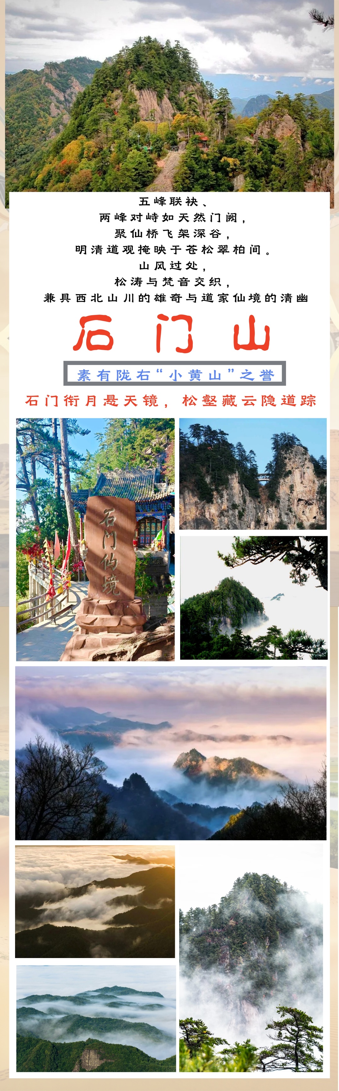 下午前往石门景区,欣赏“陇上小黄山”的险峻峰林与丹霞山水。