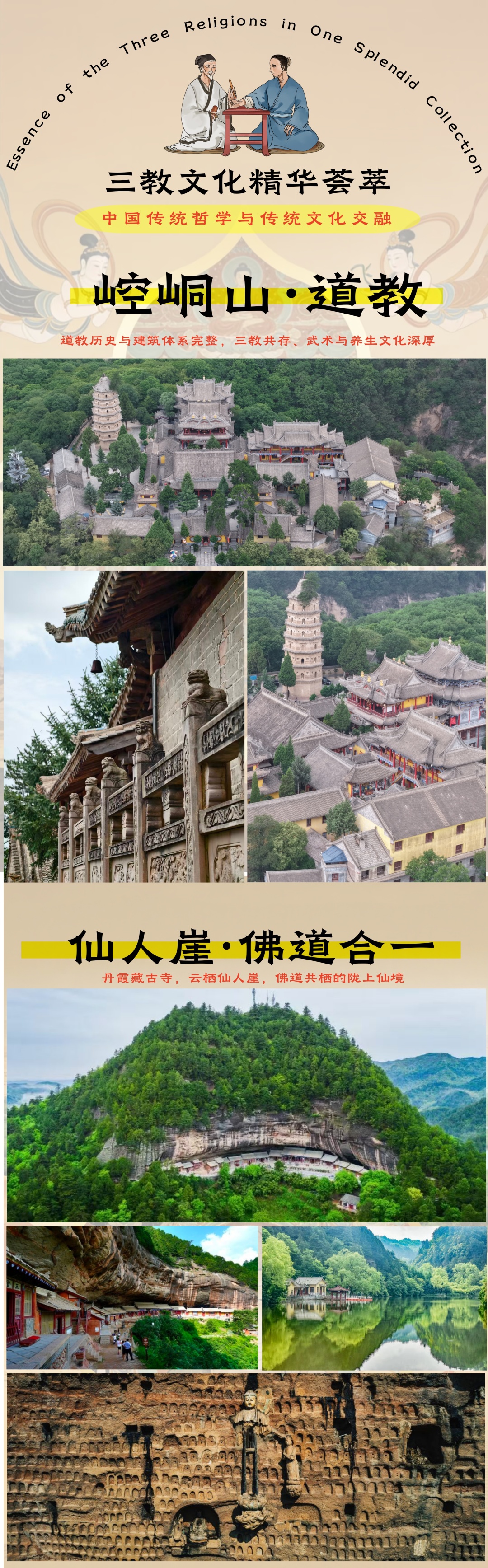 早餐后前往仙人崖,游览佛、道、儒三教合一的清幽秘境,观赏奇峰秀水、古寺洞窟与北魏造像。