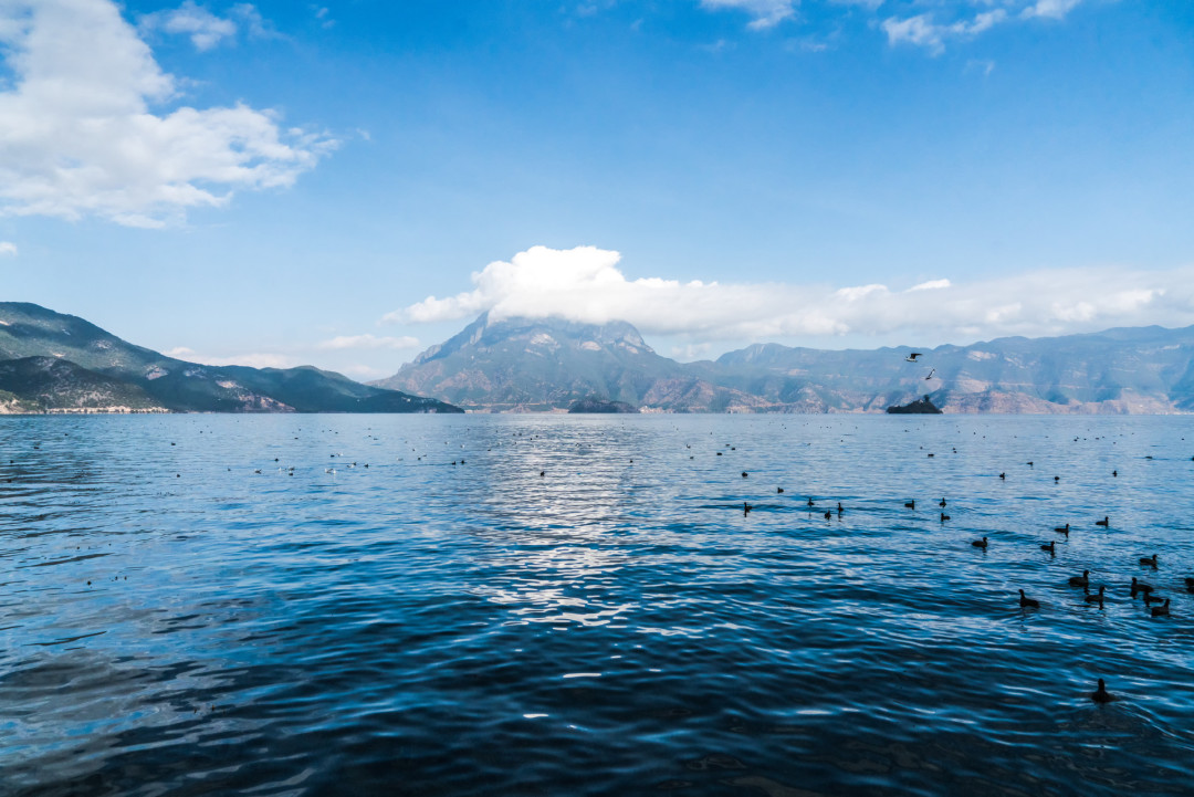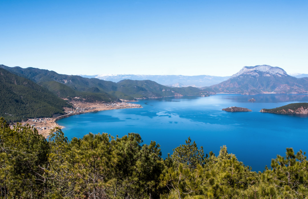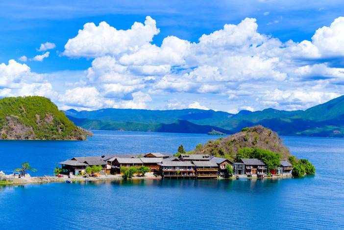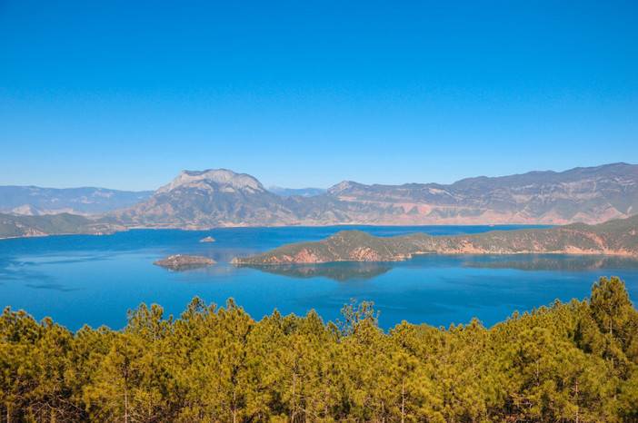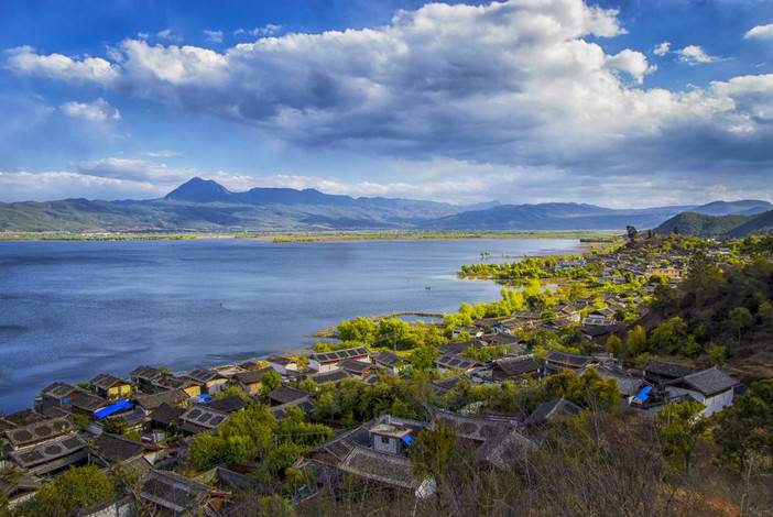 2、欣赏湖景:尽情欣赏泸沽湖的湖光山色。湖水清澈见底,能看到湖底的水草和鱼儿,远处山峦起伏,与蓝天、湖水相映成趣。如果是在水性杨花盛开的季节,还能看到湖面上漂浮着的白色小花,宛如仙境。
