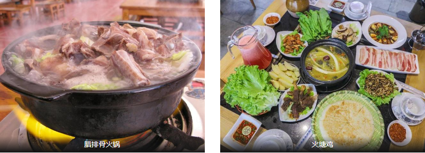 1、【腊排骨火锅】堪称丽江美食的标志性存在。精选的猪排骨经过特殊的腌制和风干过程,被时间赋予了独特的腊香;