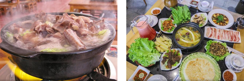 3、【黑山羊火锅】是肉食爱好者的福音。黑山羊生长在丽江的山区,它们以天然的草料为食,肉质鲜嫩紧实,毫无膻味;