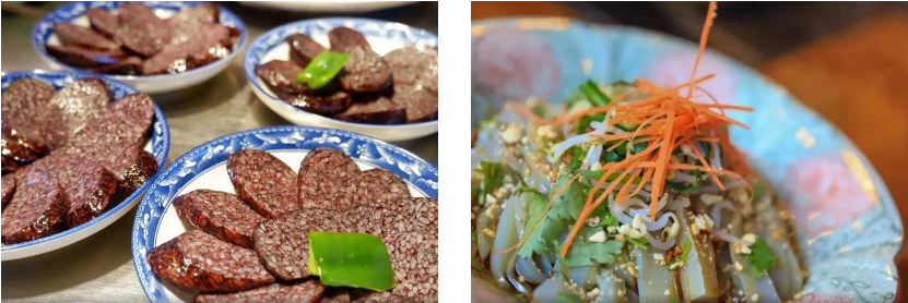 6、【米灌肠】是独具纳西族特色的美食。它的制作过程颇为独特,将猪血、糯米和各种香料混合均匀后,灌入洗净的猪大肠中。