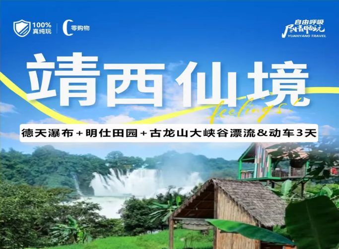 4.门票:德天瀑布大门票+接驳车,明仕田园大门票,古龙山大峡谷+漂流