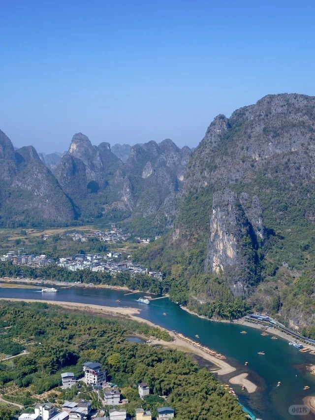 如果体力好的伙伴可以登上老寨山一睹美景,老寨山为漓江精华段的最高山峰,之所以有名是因为登上山顶可以俯瞰兴坪古镇全貌和漓江风景。但由于山峰高耸陡峭,很少有人攀登。