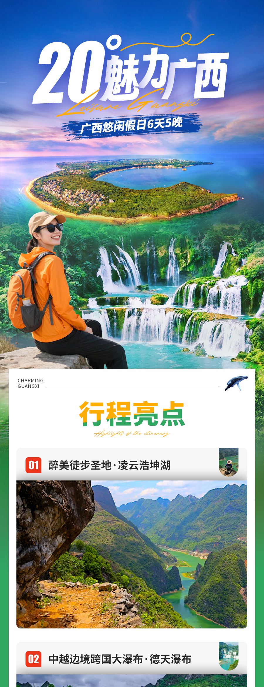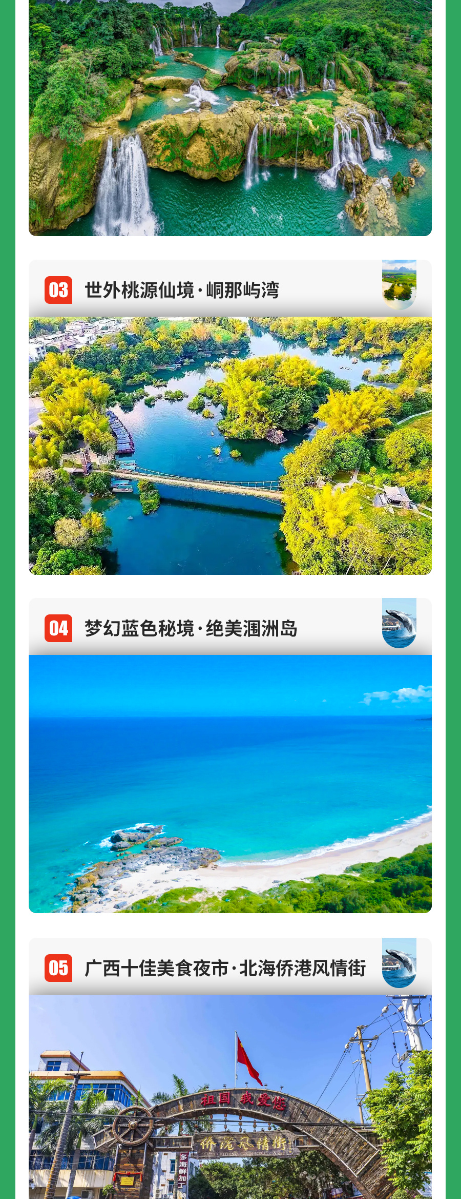 4.门票:浩坤湖接驳车、德天瀑布大门票+接驳车, 峒那屿湾门票,涠洲岛往返船票+门票