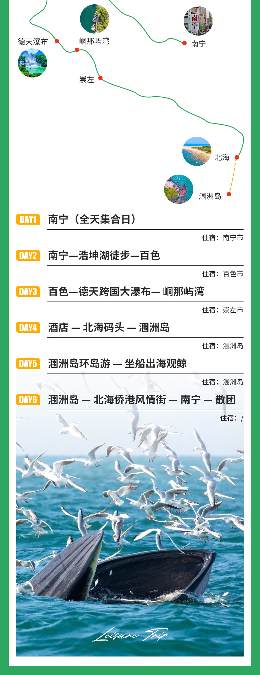 2、涠洲岛如受大风大浪影响导致停航,导致不能上岛,改换其他周边其他景点,费用多退少补,敬请理解!