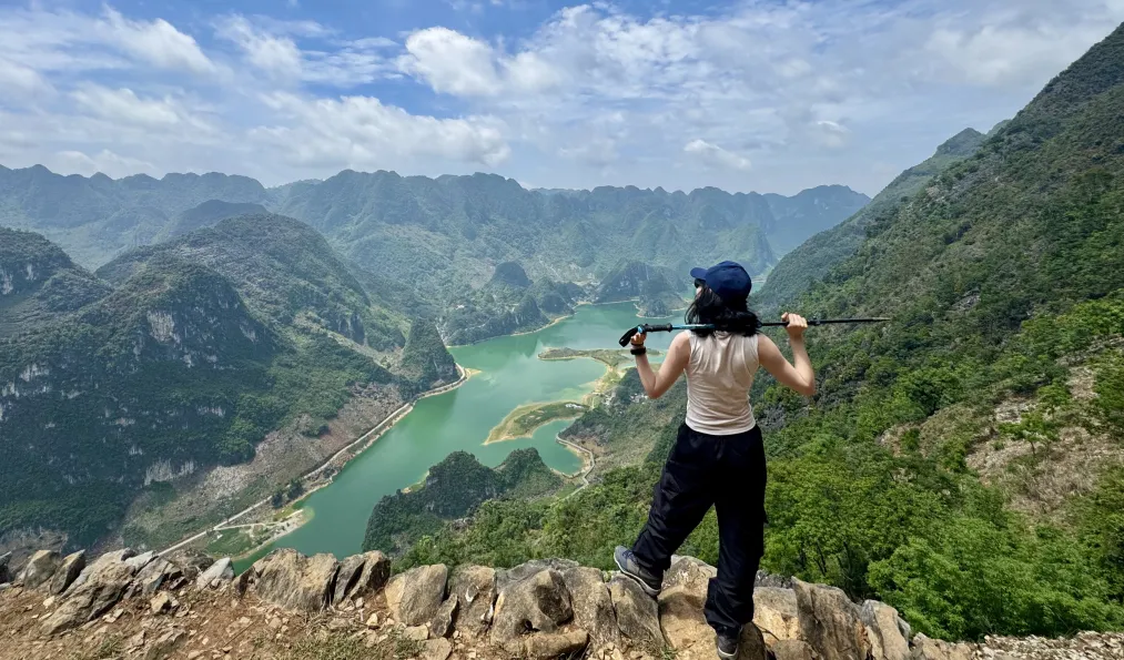 11:30 到达浩坤湖,我们换乘当地接驳交通工具前往徒步起点,开始徒步网红广西版“纳木错”浩坤湖,俯瞰浩坤湖全景,拍照打卡。下山后可以选择不参加徒步,自费乘车直接到终点,也可以选择乘船游湖,烟波浩淼的湖面,倒影着朵朵白云,湖上有很多迷你小岛,点缀着翠绿的湖水;