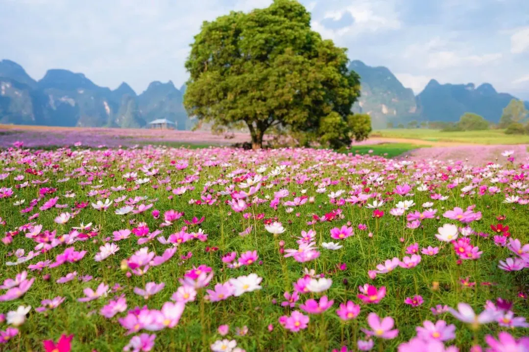 春季来临,峒那屿湾的格桑花绝美盛放!粉嫩的花蔓盛开在山水之境,向远处眺望,好像风一扬,就闯入了爱丽丝仙境,想要开启一趟关于格桑花的奇幻之旅~