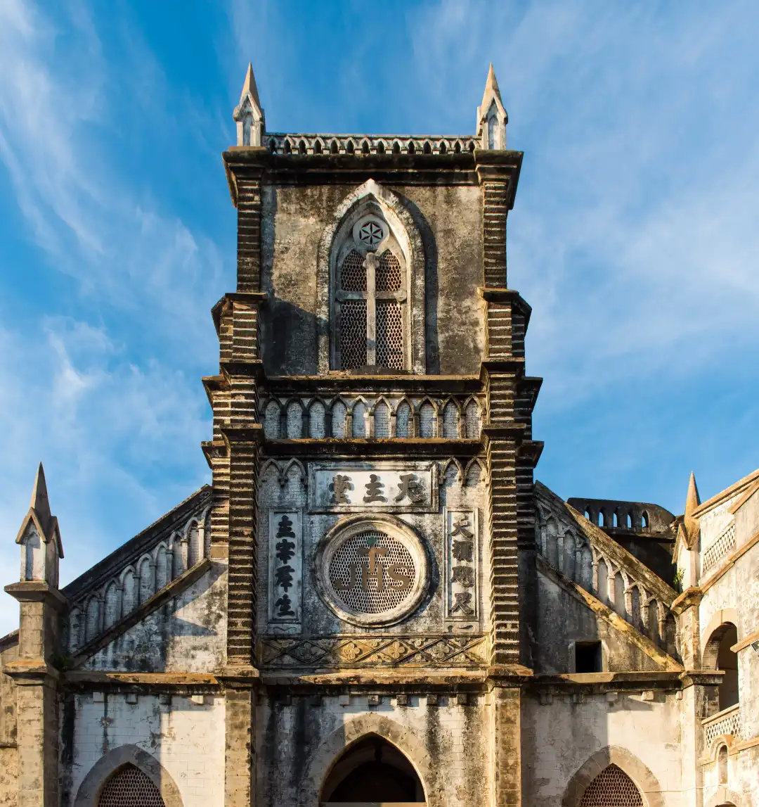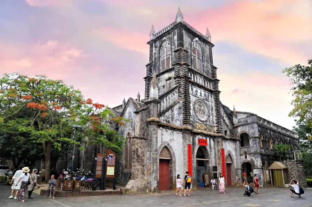 天主教堂位于涠洲岛东北部的盛塘村,由法国巴黎外方传教会于1853年修建