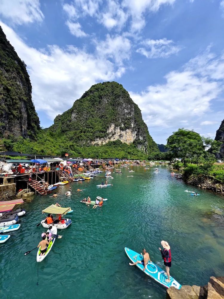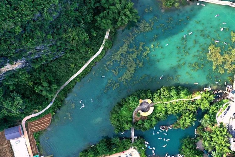 4.河池:走进世界最大的天窗群河池都安,游玩地下河天花板、天窗之首九顿天窗,澄江河上划桨板、游泳、看海菜花。