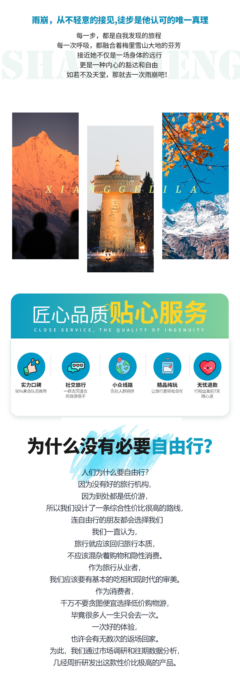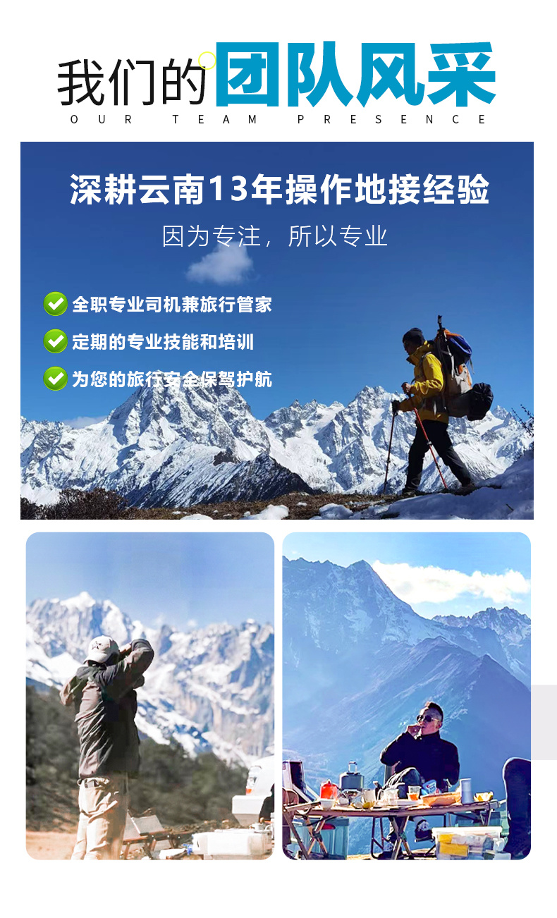 特别说明:雨崩结束后,虎跳峡会换其他师傅服务,可能也会存在当地拼车到景区的情况,敬请理解!