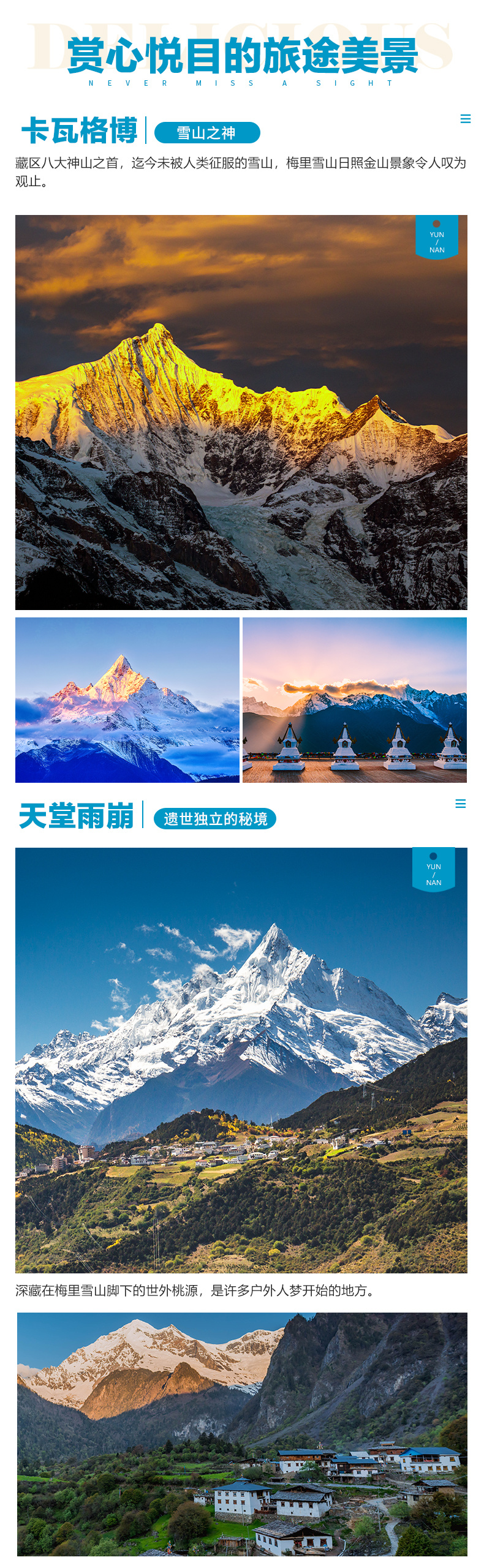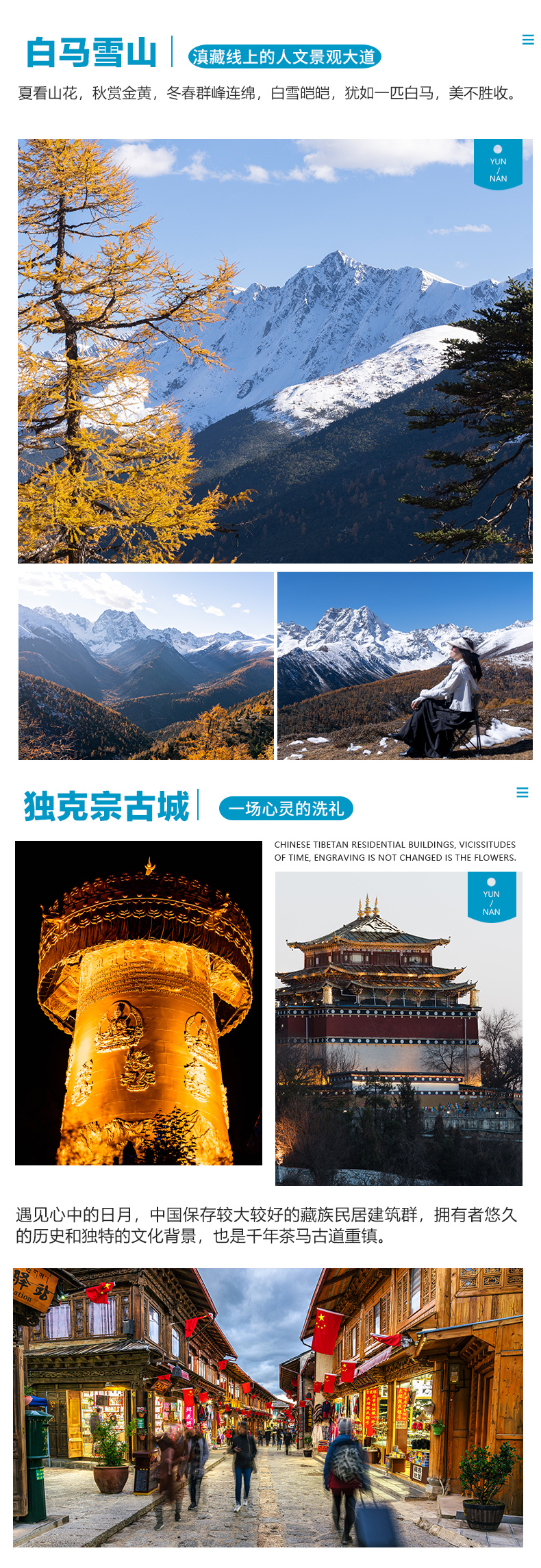 丽江→独克宗古城→依拉草原→奔子栏→金沙江月亮湾→白马雪山→飞来寺