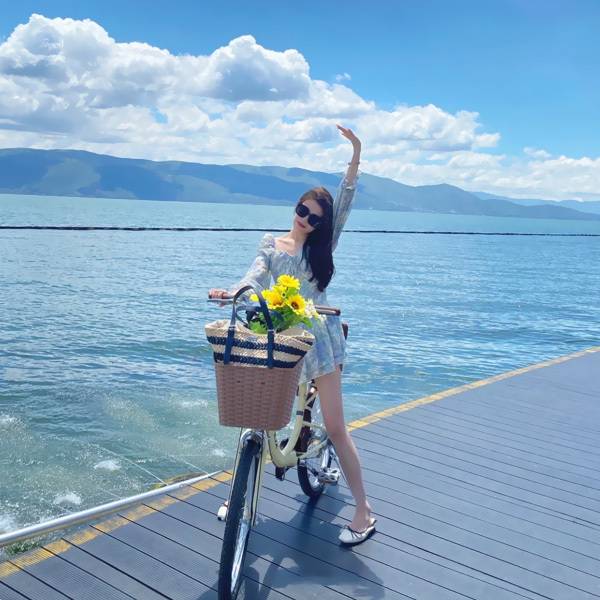 接着到达【磻溪S湾】这里蓝天白云高山湖泊搭配白色民居建筑和水中的古树拍出来的照片会让人错以为是来到了“镰仓”,故而这里成了众多文艺人士的打卡地。在此我们安排洱海S湾段【骑行体验】。