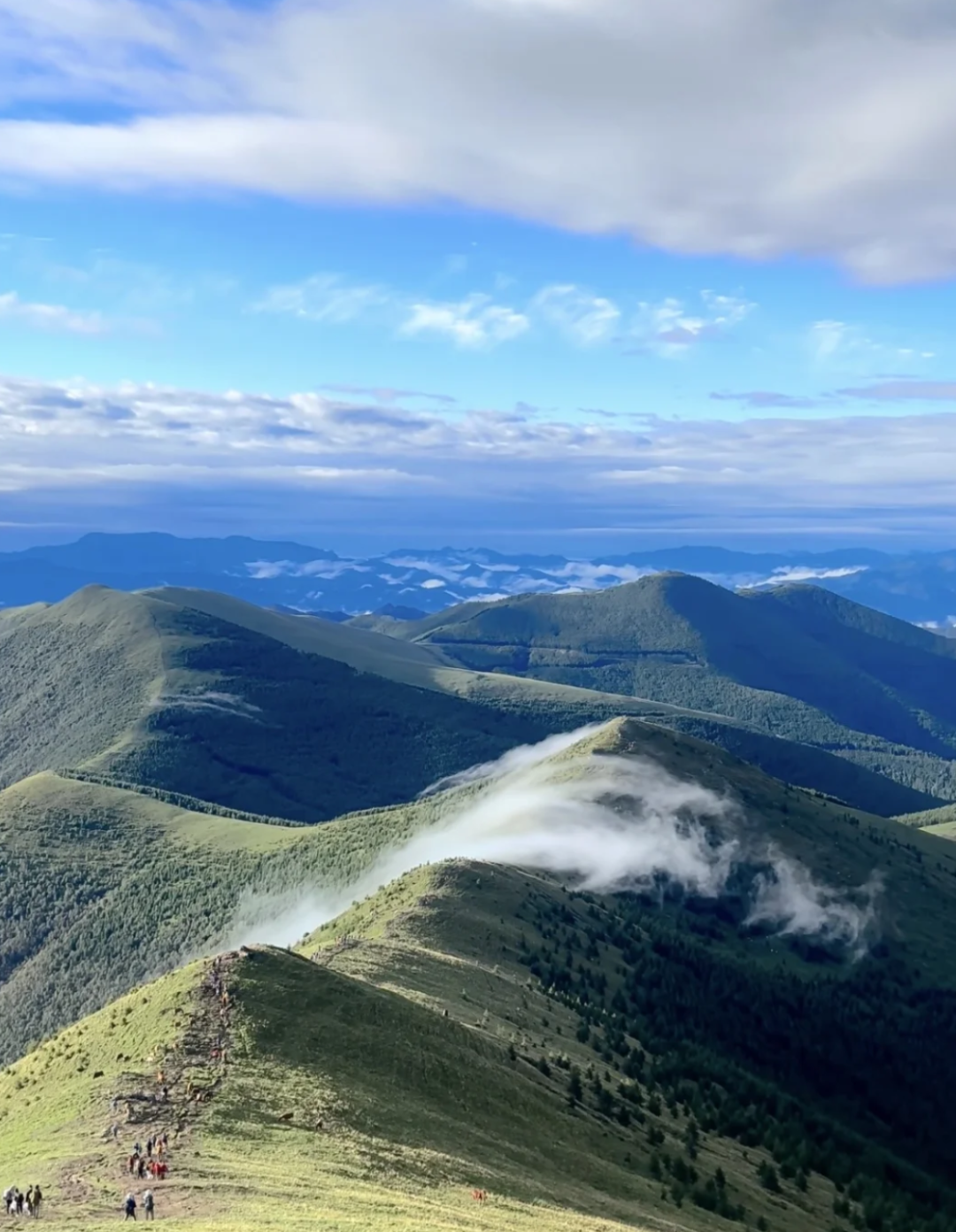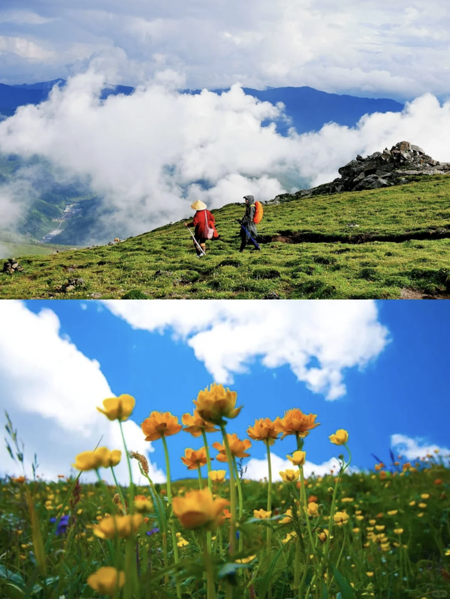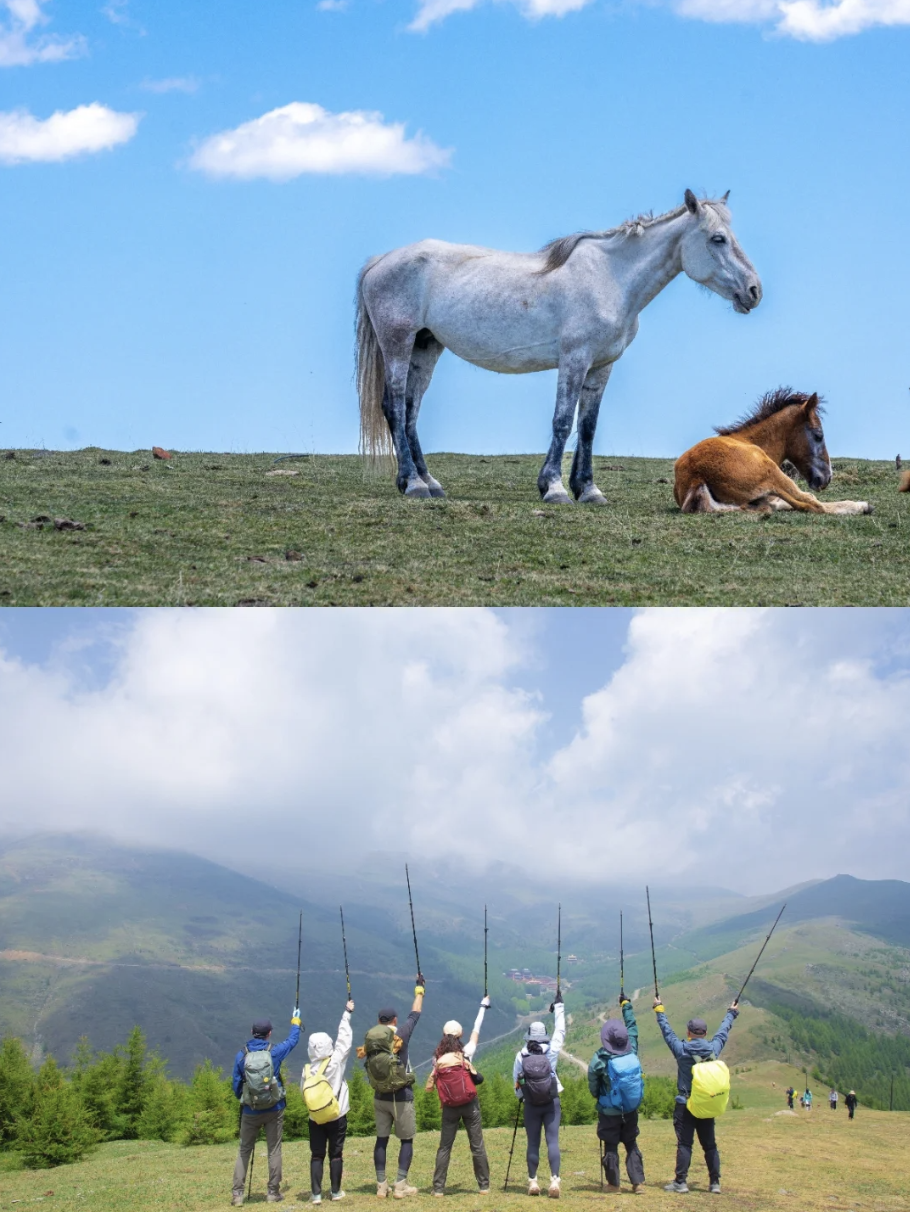 鸿门岩—东台(2km):此为行程之序章,亦是最动人心魄的治愈之旅。循着平缓步道缓缓前行,脚下是铺展无垠的青翠草甸,如绿毯覆于群山之上,远处峰峦连绵,如墨染丹青